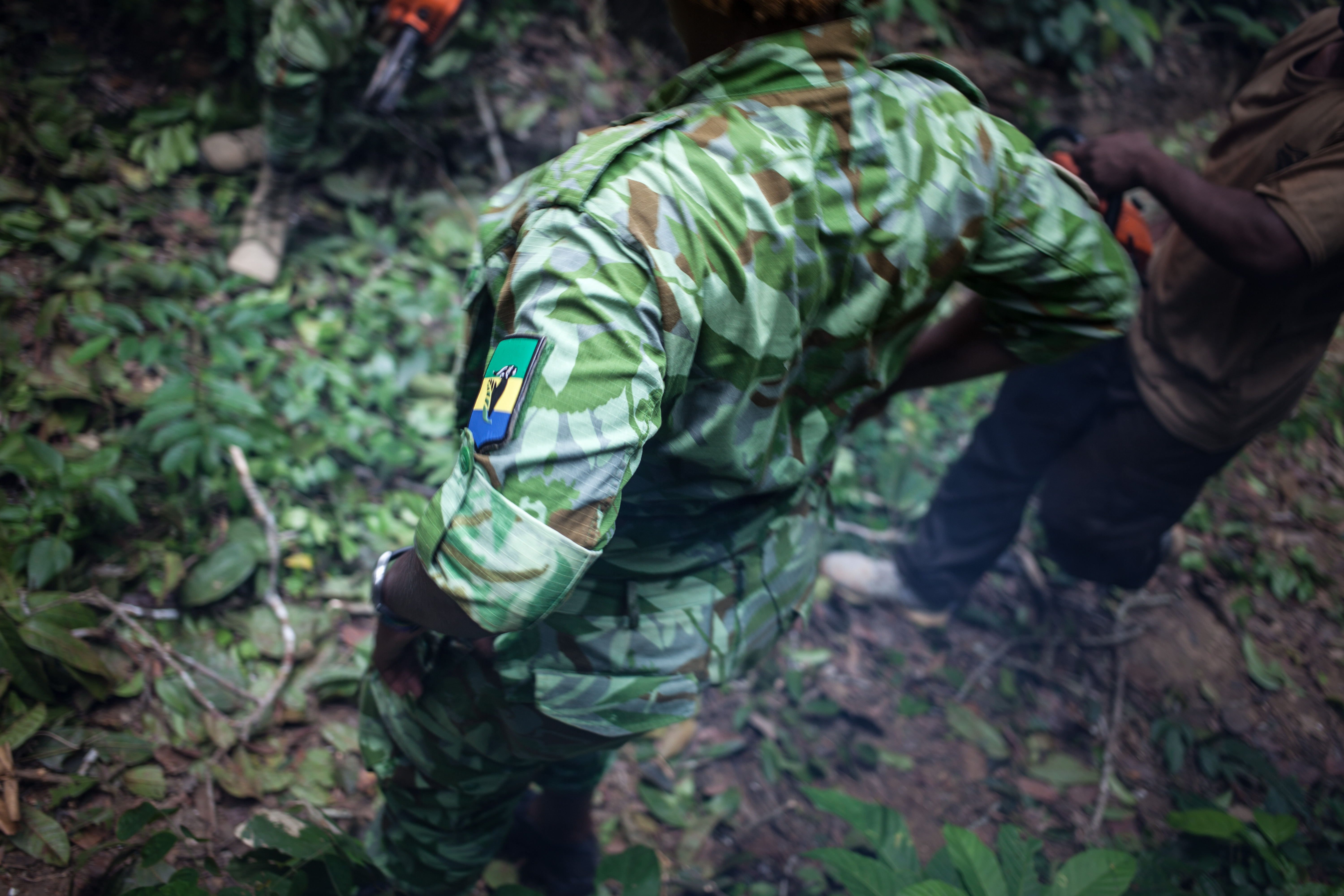 Previous Image AHAUCHARD_LANGOUE-4 Eco-gardes de l’Agence nationale des parcs nationaux (ANPN) du Gabon, sur une piste, dans le parc de l’Ivindo, dans la région de l’Ogoué-Ivindo, Gabon, le 25/04/19.